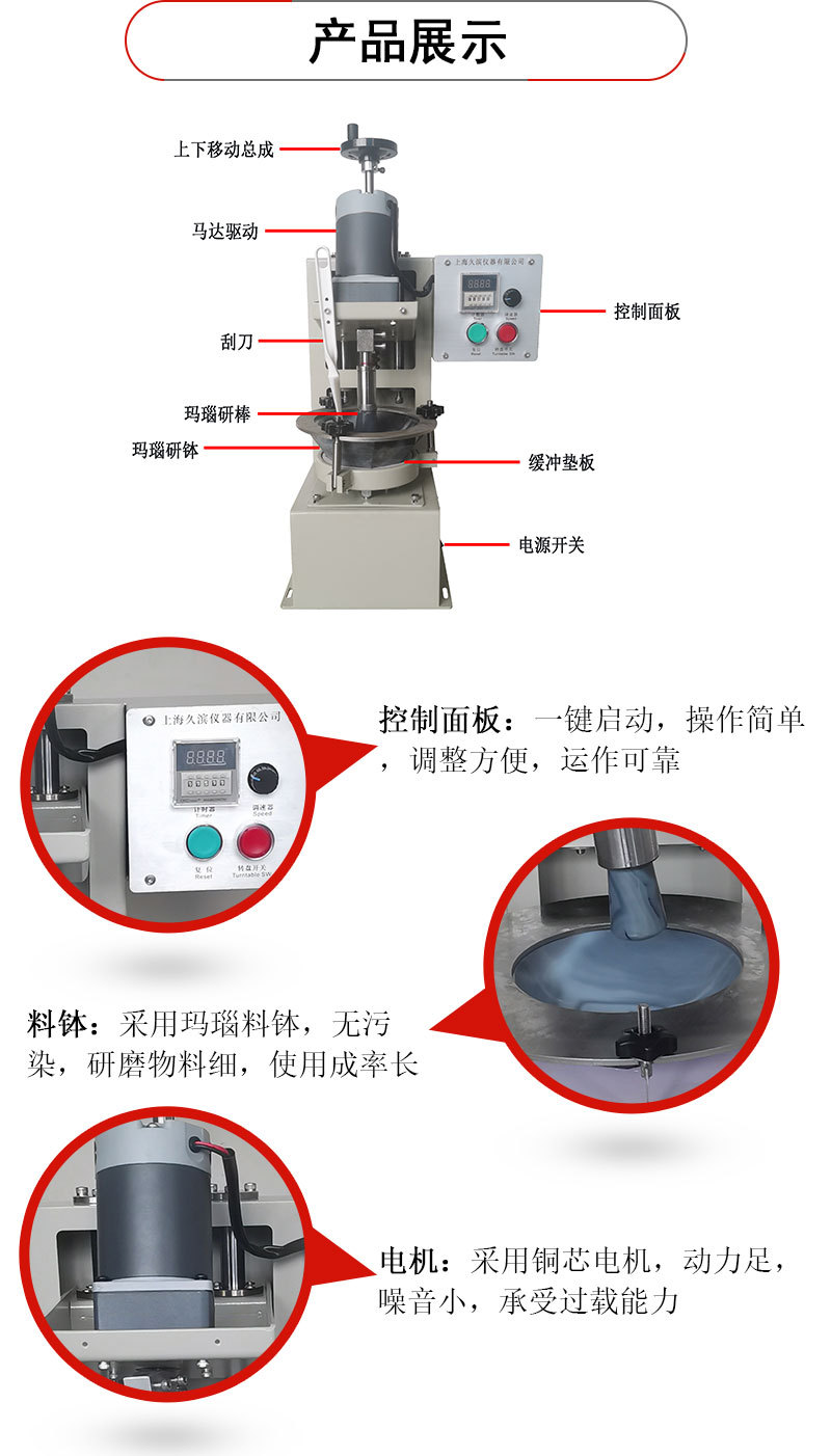 電動瑪瑙研磨機,具有操做簡單,研磨細度可達微米級。替代了以往的研缽繁重的手動研磨,解放了雙手、節(jié)省了時間,碾磨效果也遠遠超過手動的研磨。