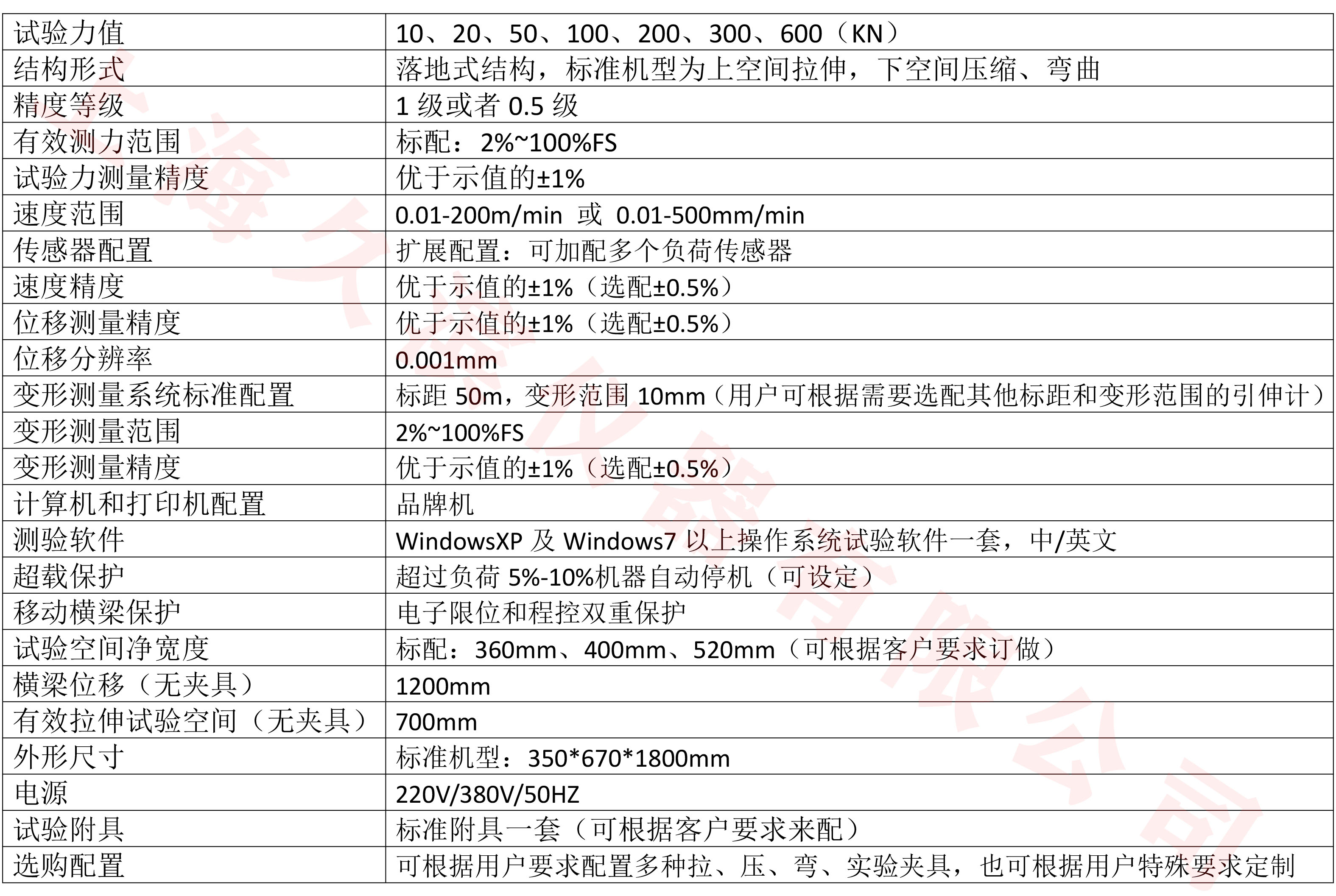 電子萬(wàn)能試驗(yàn)機(jī)采用落地式結(jié)構(gòu),把工作臺(tái)直接固定在四根導(dǎo)向柱上,四根導(dǎo)向柱成為整機(jī)的支撐。這樣就克服了臺(tái)式電子萬(wàn)能試驗(yàn)機(jī)機(jī)座不穩(wěn)定的缺點(diǎn),大大增加了主機(jī)的剛度。另外,移動(dòng)橫梁、上橫梁及工作臺(tái)都采用鋼材制造,在保證有足夠剛度的情況下,也增加了一定的彈性,確保試驗(yàn)機(jī)使用耐久、安全可靠。