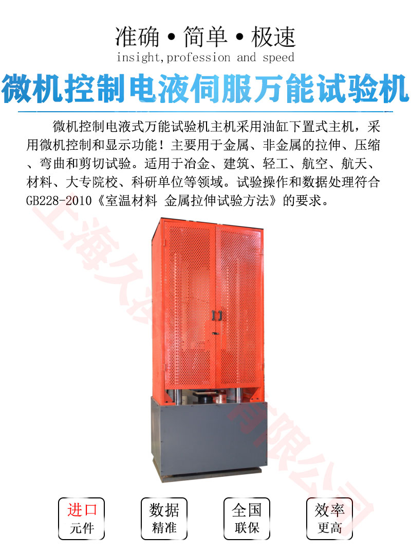 微機(jī)控制電液式萬(wàn)能試驗(yàn)機(jī)主機(jī)采用油缸下置式主機(jī),采用微機(jī)控制和顯示功能!主要用于金屬、非金屬的拉伸、壓縮、彎曲和剪切試驗(yàn)。適用于冶金、建筑、輕工、航空、航天、材料、大專(zhuān)院校、科研單位等領(lǐng)域。試驗(yàn)操作和數(shù)據(jù)處理符合GB228-2010《室溫材料 金屬拉伸試驗(yàn)方法》的要求。