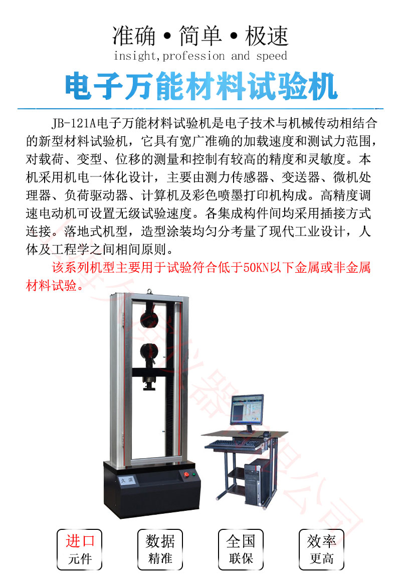 JB-121系列電子萬能材料試驗(yàn)機(jī)是電子技術(shù)與機(jī)械傳動(dòng)相結(jié)合的材料試驗(yàn)機(jī),它具有寬廣準(zhǔn)確的加載速度和測試力范圍,對載荷、變型、位移的測量和控制有較高的精度和靈敏度。本機(jī)采用機(jī)電一體化設(shè)計(jì),主要由測力傳感器、變送器、微機(jī)處理器、負(fù)荷驅(qū)動(dòng)器、計(jì)算機(jī)及彩色噴墨打印機(jī)構(gòu)成。高精度調(diào)速電動(dòng)機(jī)可設(shè)置無級(jí)試驗(yàn)速度。各集成構(gòu)件間均采用插接方式連接。落地式機(jī)型,造型涂裝均勻分考量了現(xiàn)代工業(yè)設(shè)計(jì),人體及工程學(xué)之間相間原則。