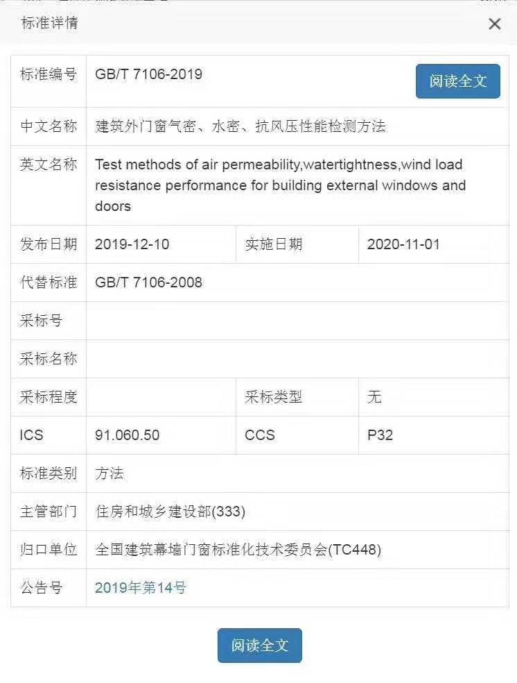 GB/T 7106-2019《建筑門(mén)窗氣密、水密、抗風(fēng)壓性能檢測(cè)方法》