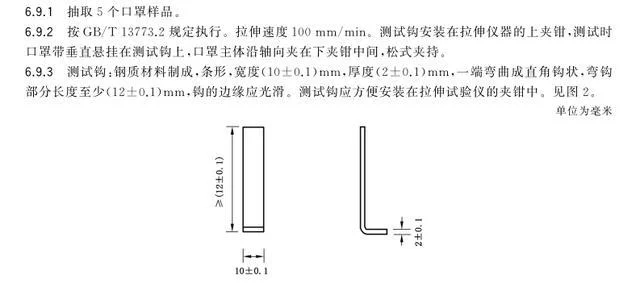 口罩帶應有足夠強度固定口罩位置,根口罩帶與口罩體連接點的斷裂強力應不小于10N。