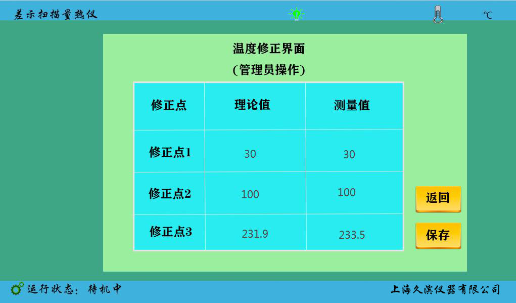 12、參數(shù)標(biāo)準(zhǔn):配有標(biāo)準(zhǔn)校準(zhǔn)物(錫),帶一鍵校準(zhǔn)功能,用戶可自行對溫度進(jìn)行校準(zhǔn)