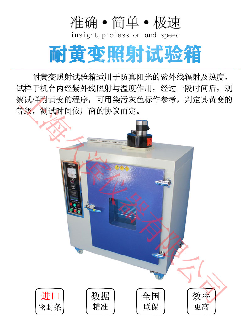 耐黃變照射試驗(yàn)箱適用于陽(yáng)光的紫外線輻照及熱度,試樣于機(jī)臺(tái)內(nèi)經(jīng)紫外線照射與溫度作用,經(jīng)過一段時(shí)間后,觀察試樣變的程度,可用染污灰色標(biāo)作參考。